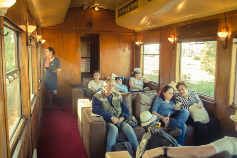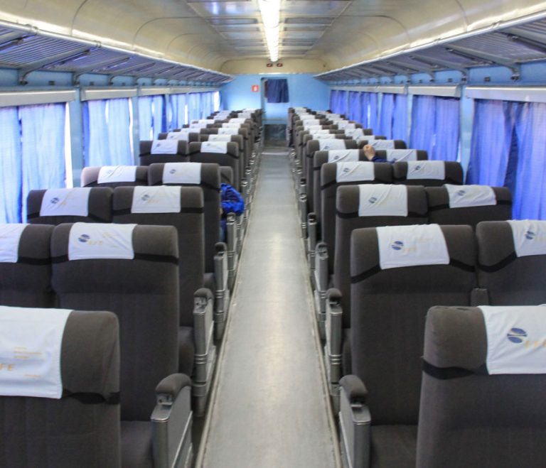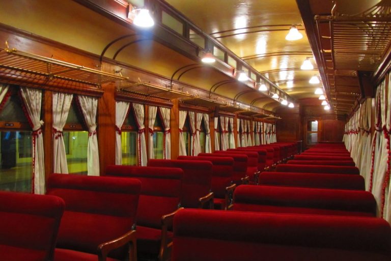 Coche con grandes y amplios sillones para 3 personas cada uno, con calefacción y grandes ventanales. Tiene una capacidad máxima de 30 personas.
